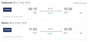 Decembra UGODNO na Kanarske otoke! Povratna letalska vozovnica Dunaj-Tenerife že od 94,00€!