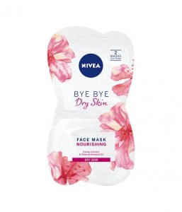 NIVEA Bye Bye Dry Skin maska za obraz zagotavlja čudovito gladko kožo. Ta izjemno hranilna maska z bogato oranžno rumeno emulzijo pomiri kožo in ji podari zdrav videz, obenem pa suho kožo naredi čudovito mehko. Formula, ki vsebuje izvleček medu in mandljevo olje, učinkovito prodre v kožo s hranilnimi in mehčalnimi sestavinami ter antioksidanti. S svojim edinstvenim kompleksom sestavin NIVEA Bye Bye Dry Skin maska za obraz razvaja suho kožo ter ji podari naraven, zdrav in navlažen videz.
