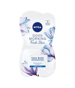 NIVEA Good Morning Fresh Skin maska za obraz za normalno kožo s svojo lahko, nežno modro obarvano emulzijo intenzivno vlaži in poskrbi za čudovito svežo kožo. NIVEA Good Morning Fresh Skin maska za obraz je obogatena z alojo, ki je znana po svojih zdravilnih lastnostih in osvežujočem učinku, kožo ohladi ter jo predrami za nove dogodivščine v vsakdanjem življenju. Intenzivno vlažilna formula vsebuje tudi vitamin E, pomemben antioksidant, ki pomaga uničevati proste radikale in ščititi celične membrane, ki tvorijo bariero okrog kožnih celic. Koža tako ostane navlažena in pomirjena. Dobro navlažena koža je odpornejša ter je videti bolj zdrava in spočita.