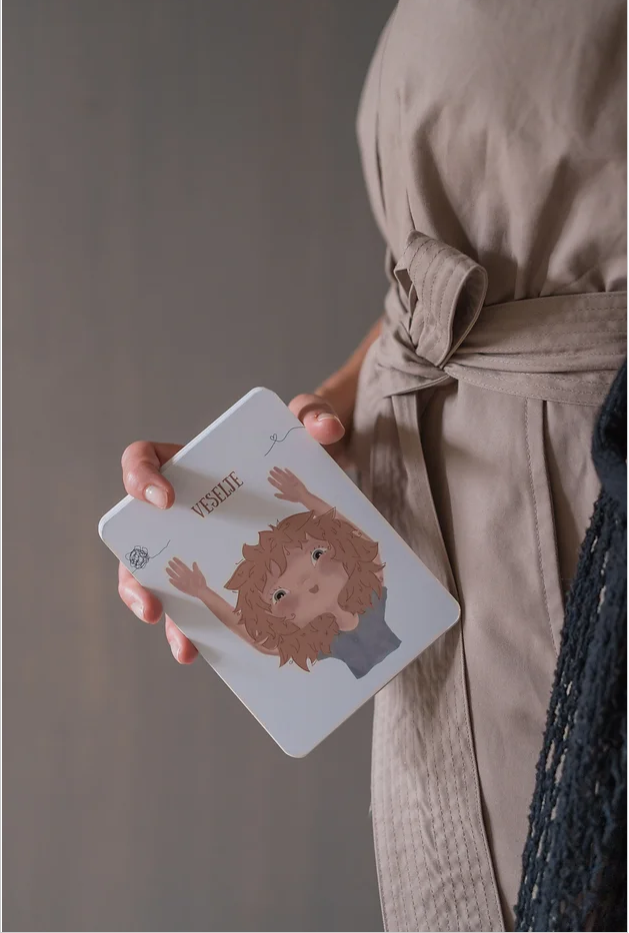 V kompletu je 18 kartic, na vsaki pa so usmerjena vprašanja za spoznavanje lastnega čustvenega terena in naloge za krepitev čustvene pismenosti.