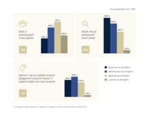 nakupovanju. Večina Slovencev rada preizkuša nove stvari, večina jih tudi zasleduje življenje z izzivi, novostmi in spremembami, kljub temu pa večina daje prednost preverjenim stvarem pred tveganji in na različnih področjih življenja vztraja pri svojih obstoječih navadah. Skoraj polovica vidi spremembe ustaljenih navad kot zelo zahtevno