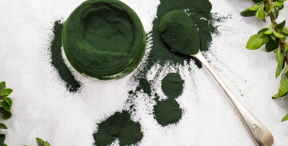 Spirulina, superživilo vseh super superživil, je prašek, pridobljen iz alg, ki vsebuje veliko beljakovin, železa, vitaminov in kar 18 različnih aminokislin. Njena bogata, temno zelena barva prihaja iz klorofila, ki pomaga izločiti toksine iz našega telesa, vrača naši koži živahnost in krepi naš imunski sistem – vse v enem!